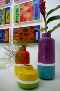 This is a very well composed shot of my husband Ken Perkins paintings. Perfect with the graphic vases.