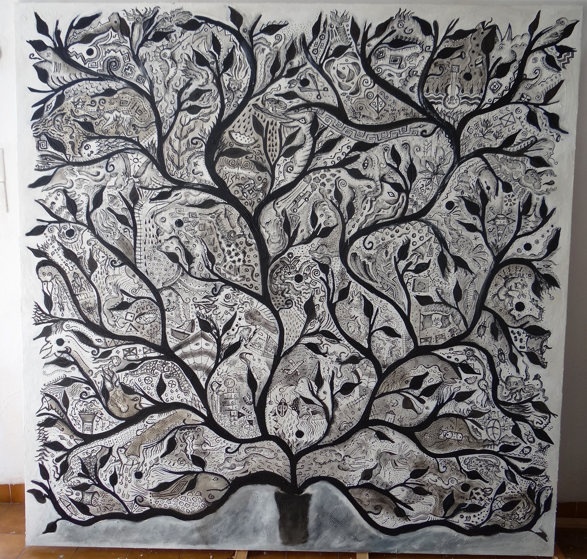 I’m not a prolific painter – along with my engravings and curatorial projects, I only do a few paintings each year. They are usually fairly large and they always come from my emotions. The white one is a painting about life and the black one is a painting about death, at least how we as Mexicans view death. I completed this work a few days before my wife and I lost our twins in utero. It was a devastating time for us and I did not paint for the rest of the year. My gallery in New York encouraged me to look at the piece again, to see what I must have been sensing at the time, and to start painting again.