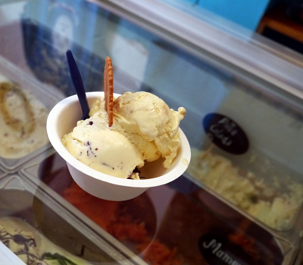 Ice cream is like Disney crack; it has the power to lift spirits almost instantaneously and transport us to another world, ripe with new sensations and unexpected pleasures. Sex and ice cream—both can be pretty orgasmic, depending on the quality. And you have to enjoy it slowly or your brain will freeze. Ice cream I mean. The first time I ate real Italian gelato in Rome I felt I’d been hit by a thunderbolt. A tiny glass dish holding one scoop of lemon perfection rendered me speechless as every spoonful fired up taste buds I never knew I had. Up until then, mass-produced chocolate and vanilla on cones tasting of pressboard were my only experiences with frozen dessert, and they were far from sinful. But this, this was not just ice cream. This was right up there with George Clooney – da morire!