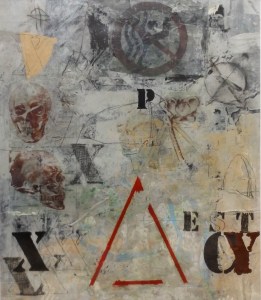 When you move around a canvas of Emilio Suárez Trejo, you can see how he’s re-imagining the world. In unskilled hands, an accumulation of text, photographs and found objects would simply be just that. In the hands of this young artist, the collection becomes an intersection of art and everyday life.